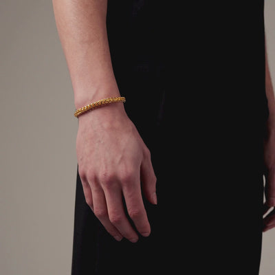 Die Cobra schmiegt sich mit unbestreitbarer Präsenz und Vielseitigkeit ums Handgelenk. Handgefertigt aus ineinandergreifenden 18K Goldgliedern, schmiegt sie sich sanft und flexibel an, fühlt sich vom ersten Moment an natürlich an. Hochglanzpoliert, wird sie von zwei aufwendig detaillierten Zylindern verankert, die jeweils mit subtilen Kleeblattgravuren versehen sind. Gesichert mit einem verstärkten, eckigen Karabinerverschluss und geschützt mit unserer charakteristischen kratzfesten Oberfläche, ist sie CRAFTD für ein Leben lang.