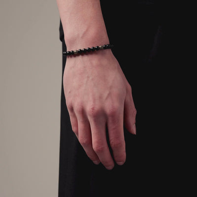 Dieses Perlenarmband kombiniert tiefschwarze Edelsteinperlen mit filigranen Akzenten aus 18-karätigem Gold und besticht durch sein klares, dezentes Design. Der Edelstein, oft als Schutzstein bezeichnet, verleiht Ihrem Look Tiefe und stärkt Ihre innere Konzentration. Dank des flexiblen, dehnbaren Kerns sitzt das Armband angenehm am Handgelenk, egal ob Sie es einzeln oder in Kombination mit anderen Armbändern tragen.