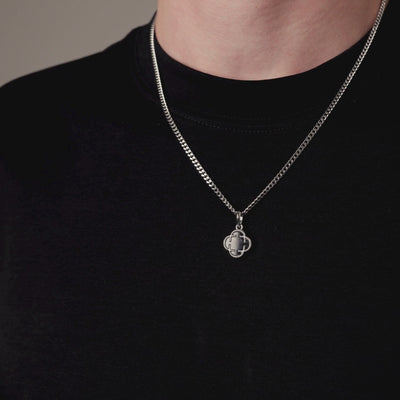 - Onyx-Kleeblatt-Anhänger + Kette (Silber)