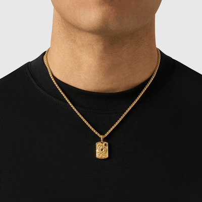 This handcrafted pendant features a sterling silver lion, finished with 18ct gold and set with a deep blue crystal. For centuries, the lion has stood as a symbol of courage, resolve, and the will to act. Not because it feels no fear, but because it chooses to move forward regardless. Turn it over and you’ll find the words 'the strength to act when fear demands silence'. A quiet reminder that the bravest man is defined not by what he feels, but by what he chooses to do instead.