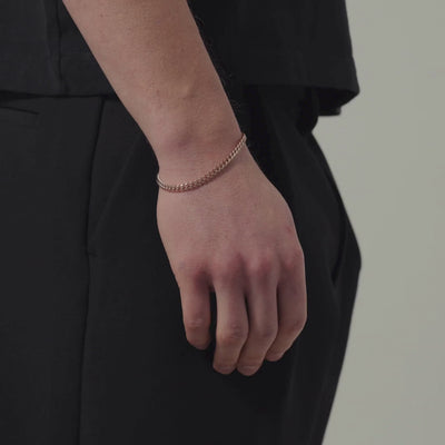 Aucune collection n'est complète sans une chaîne cubaine classique. Confectionnée dans la chaleur de l'or rose, sa teinte apporte une profondeur et une richesse incomparables. Portez-la seule ou associez-la à d'autres bijoux ; dans tous les cas, vous ne passerez pas inaperçue. Conçue pour épouser parfaitement votre poignet, ses maillons de 4 mm sont sécurisés par un fermoir mousqueton incassable et bénéficient d'une protection anti-rayures.